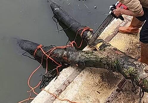 在梧垵溪河段,一組隊員們正合力將一個露出水面的斷枝拉到岸邊。由于該斷枝十分粗壯,無法整體拉到岸上。隊員們只能先將其鋸成多段后,再分段拖拽到岸上?,F(xiàn)場負(fù)責(zé)人介紹:“近期水位相對較低,使沉底樹枝暴露,若遇強降雨極易形成‘水下暗壩’,必須趕在主汛期前完成清理?!苯刂聊壳?,該行動已取得階段性成果:累計清理漂浮物、枯樹斷枝、廢棄漁網(wǎng)及沉底垃圾等近2噸,疏通河道、水閘等區(qū)域障礙物30余處。