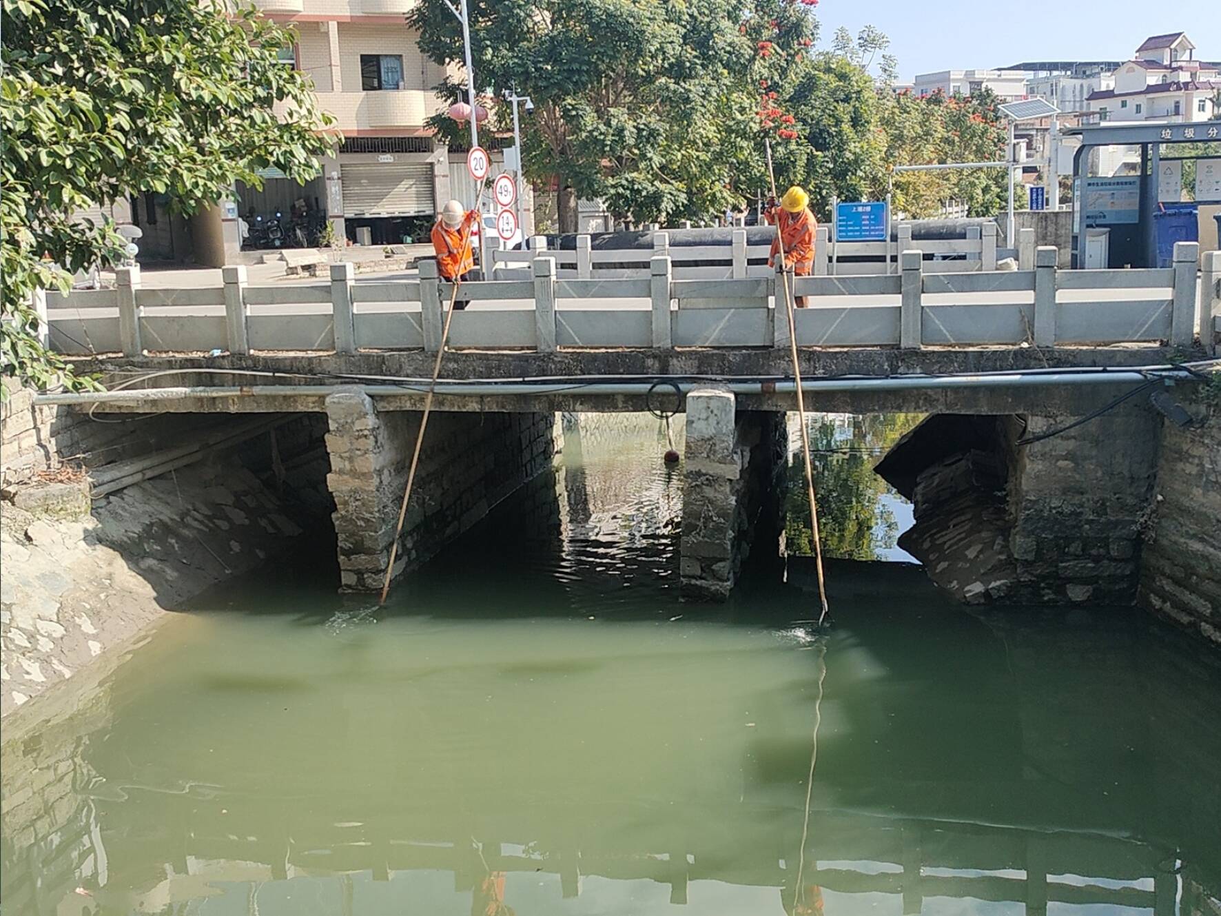 此次行動聚焦河道、水閘等重點區(qū)域開展“拉網(wǎng)式”排查整治。2月25日上午,記者在上浦龜壩閘現(xiàn)場看到,石獅龍馬河道保潔隊員手持多種工具開展立體化作業(yè):有的利用長桿對深水區(qū)實施“地毯式”摸排,有的借助泡沫打撈船精準(zhǔn)勾取沉底雜物。